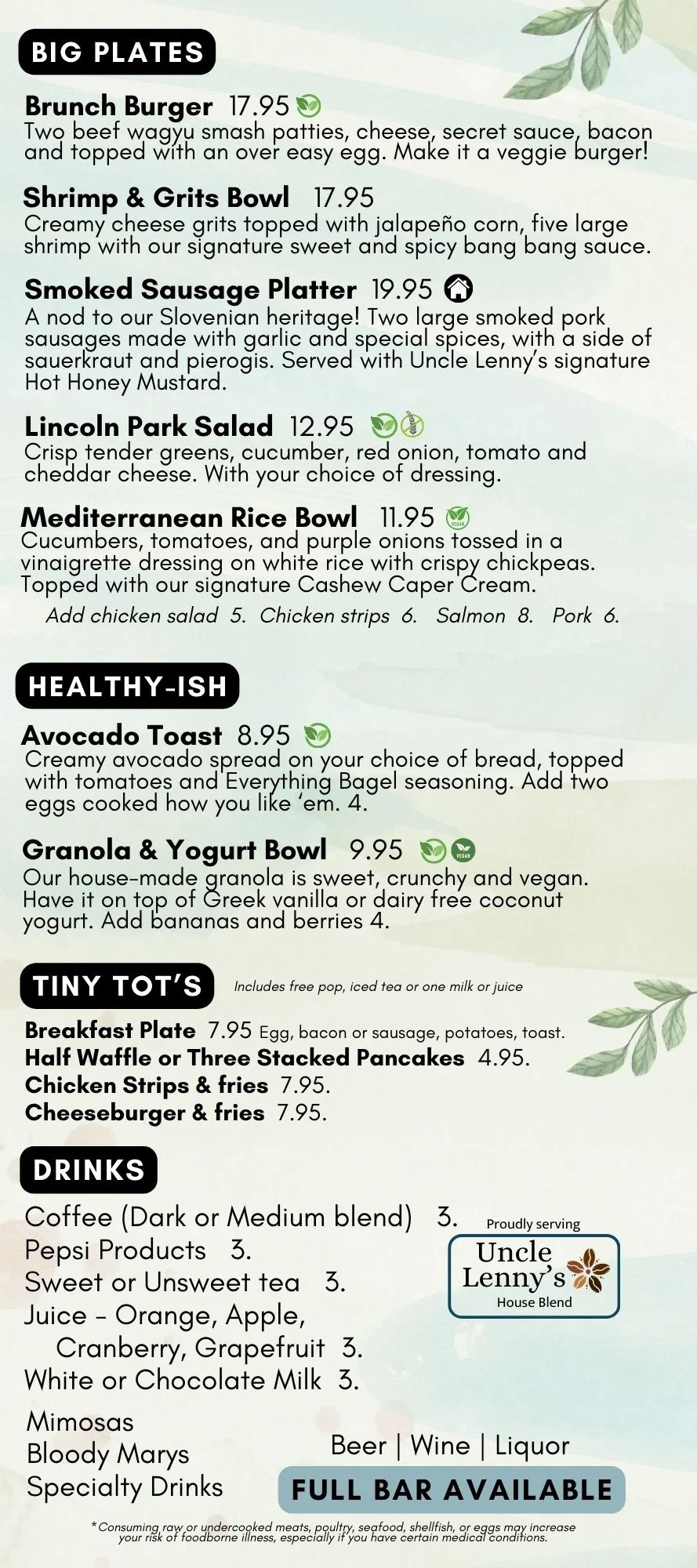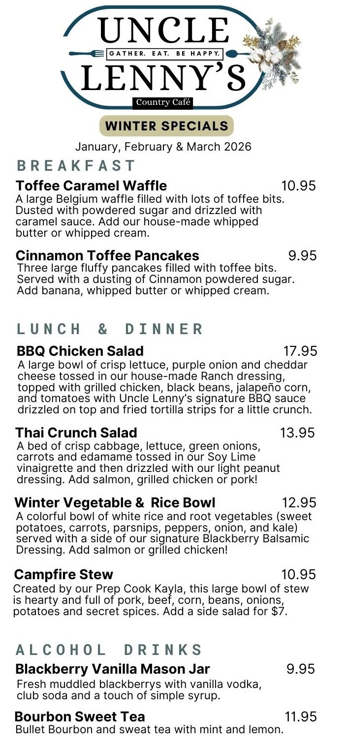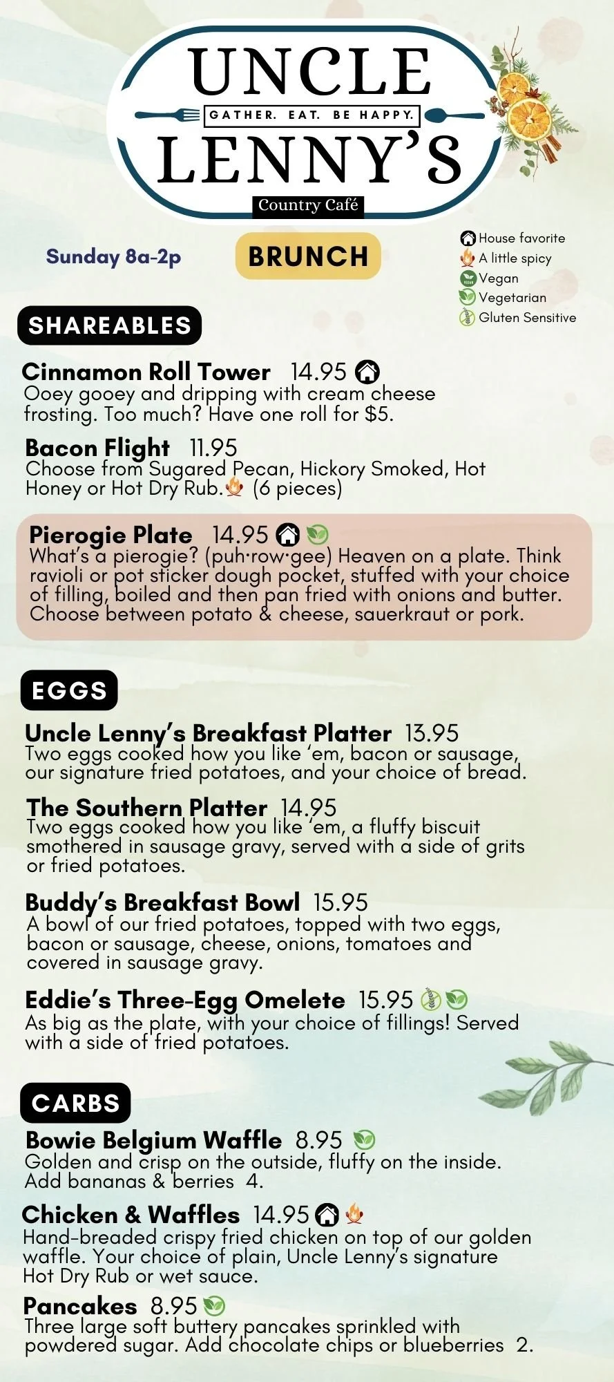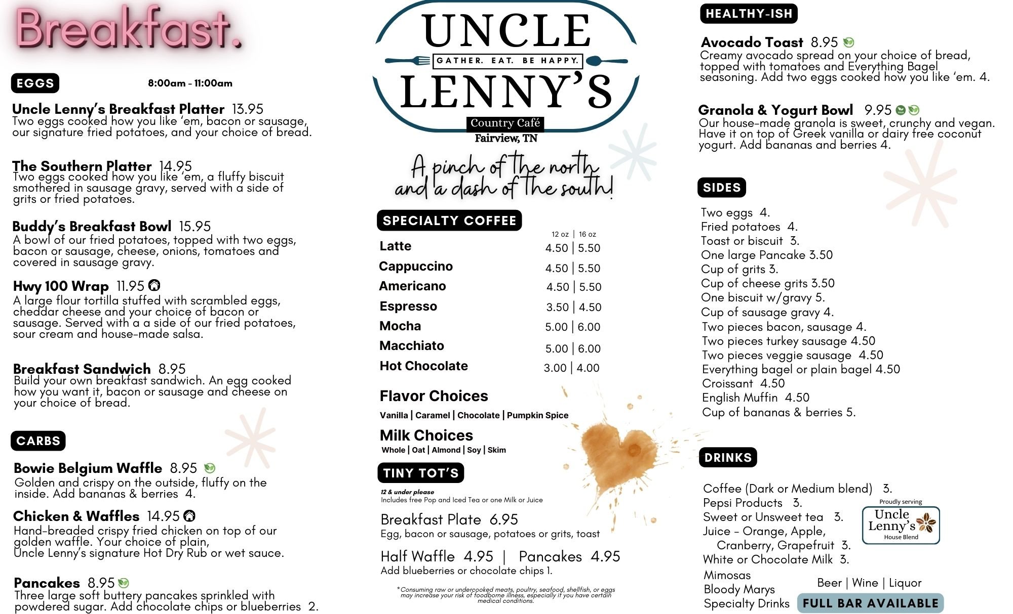 BREAKFAST SERVED MONDAY THROUGH SATURDAY 8AM TO 11AM